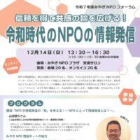 【参加者募集中】みやぎNPOフォーラム|共感を得て信頼の輪を広げる!令和時代のNPOの情報発信