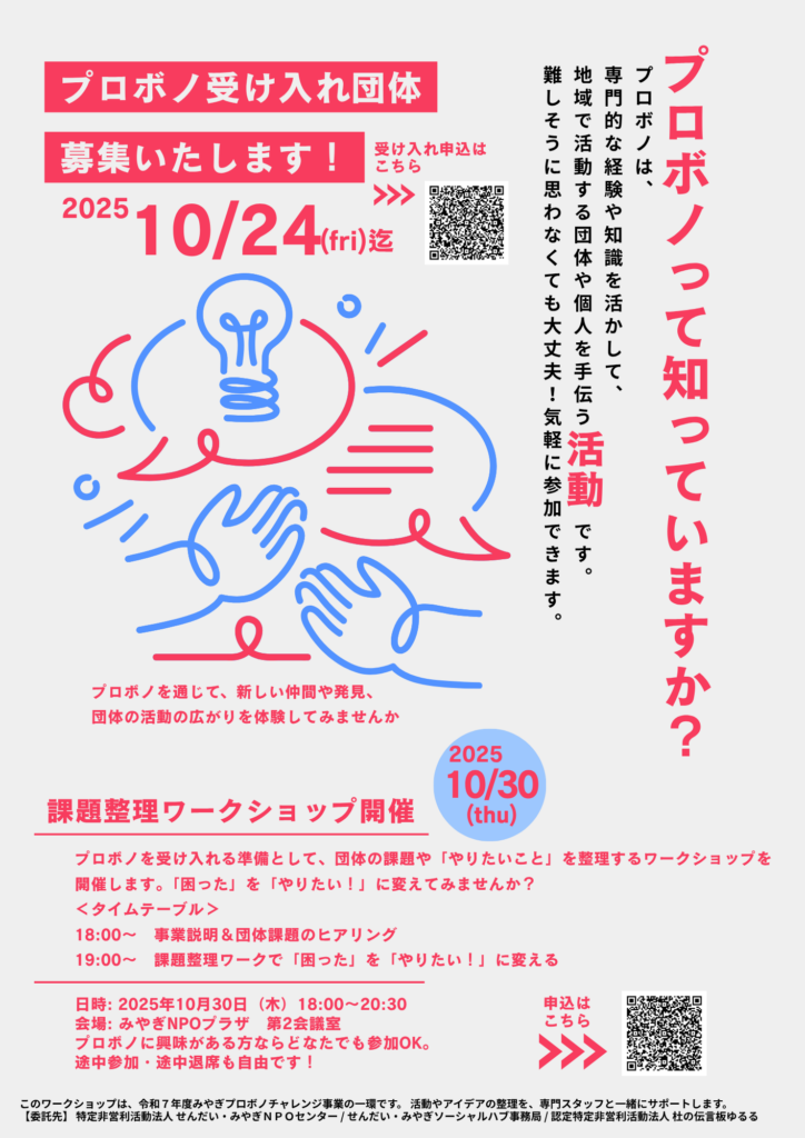 ※本ワークショップは令和7年度みやぎプロボノチャレンジ事業(宮城県事業)の一環で開催します